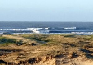 Outra referência de pico para surf na praia do Cassino são as intermediações do bairro Querência, EMA (Estação marinha de aquacultura) e Parque Heólico (Cataventos).