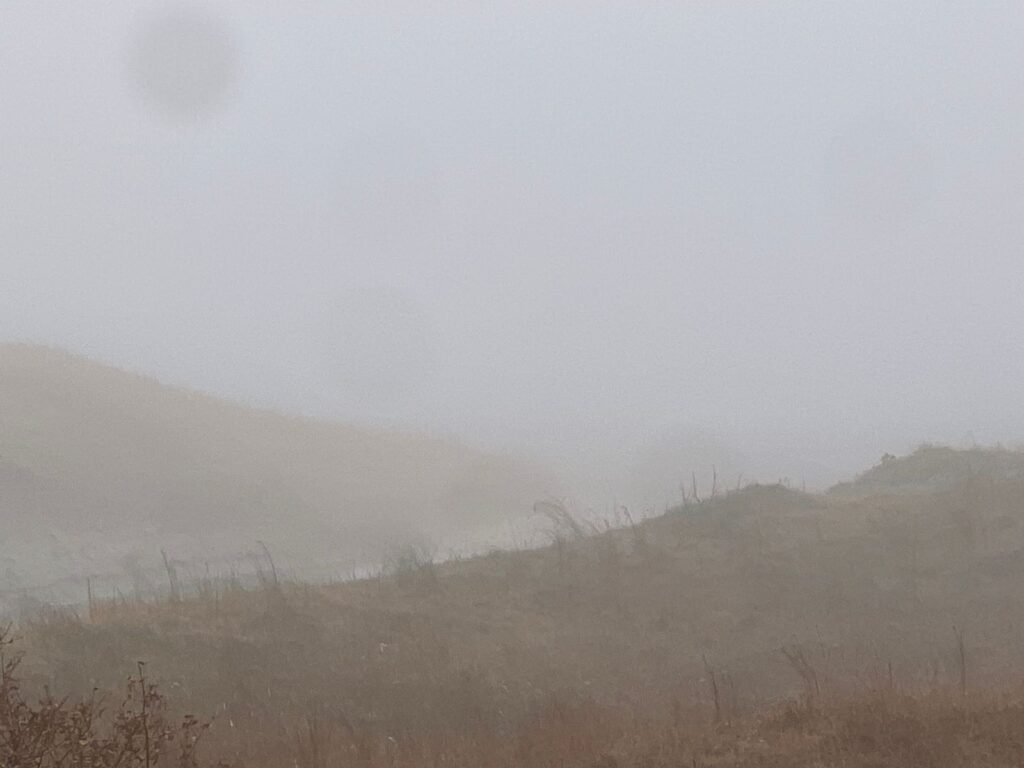 Manhã começando sem vento e com uma cerração fechada.