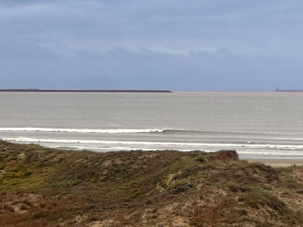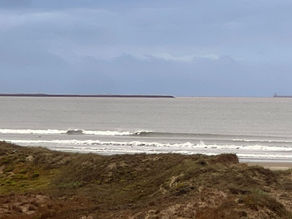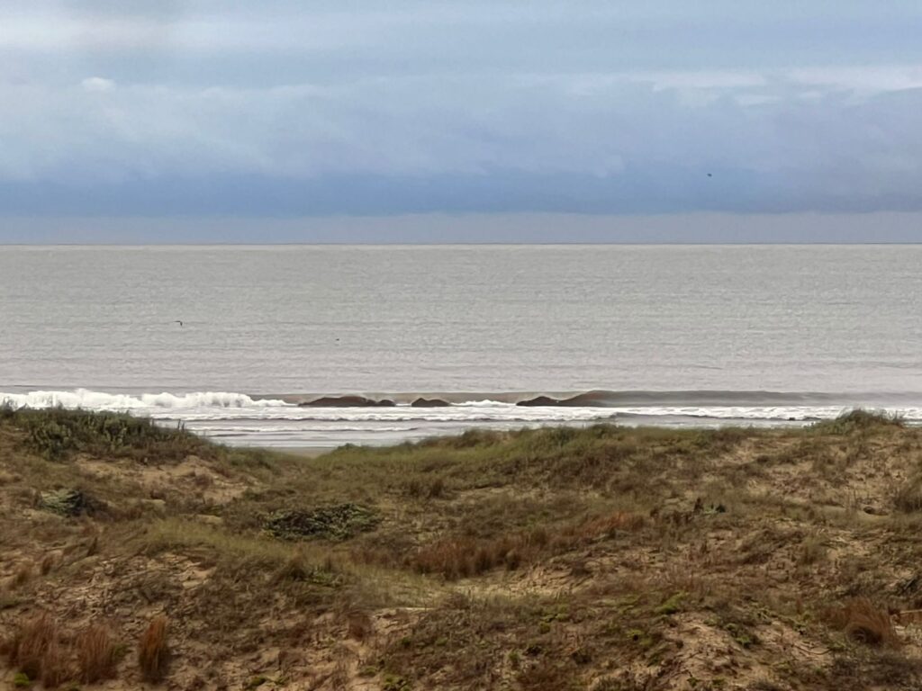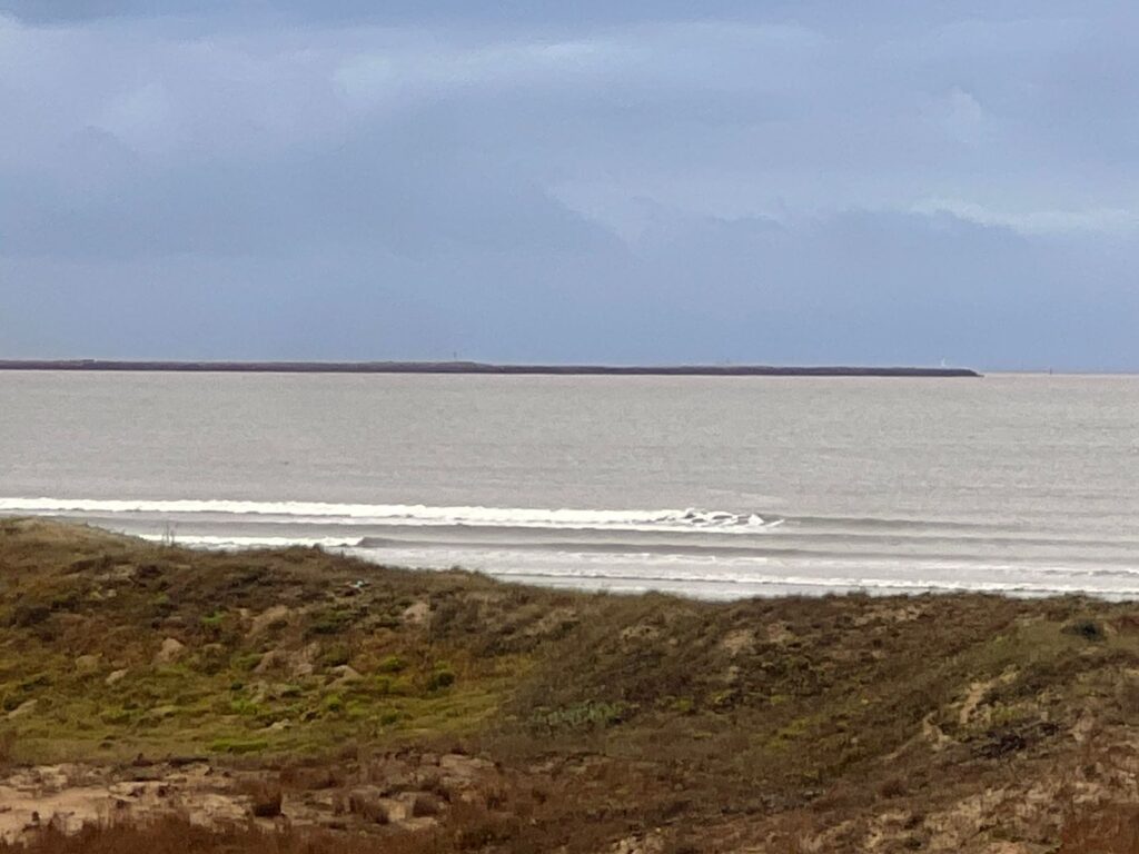 Outra referência de pico para surf na praia do Cassino são as intermediações do bairro Querência, EMA (Estação marinha de aquacultura) e Parque Heólico (Cataventos).