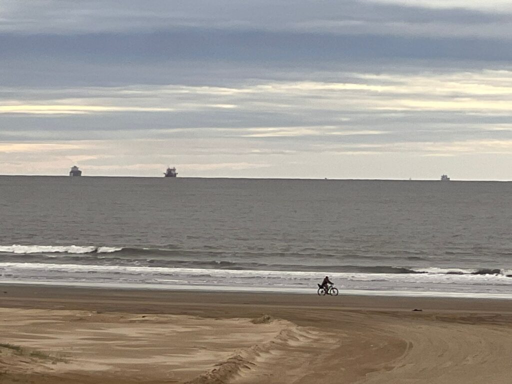 Outra referência de pico para surf na praia do Cassino são as intermediações do bairro Querência, EMA (Estação marinha de aquacultura) e Parque Heólico (Cataventos).