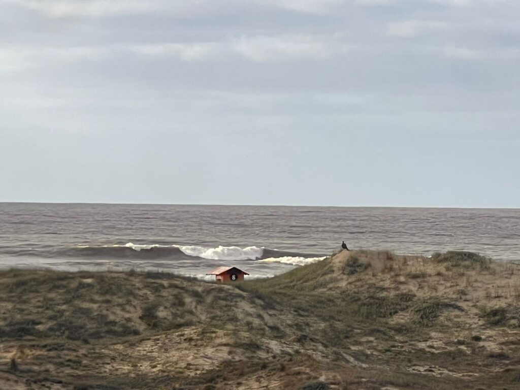 Mar perdeu força e tamanho em relação a ontem, como já era previsto, porém temos ondas de meio metro com maiores com formação regular. O mar está alinhando a cada momento e tudo indica que com a brisa de vento leste que está para entrar no decorrer da manhã, as ondas vão ficar com boa formação. Já temos um bom surf e vale a percorrida na praia entre os picos do Gelo ao Terminal. Boas ondas, bons ventos e até amanhã. Touguinha / kssino.com surf