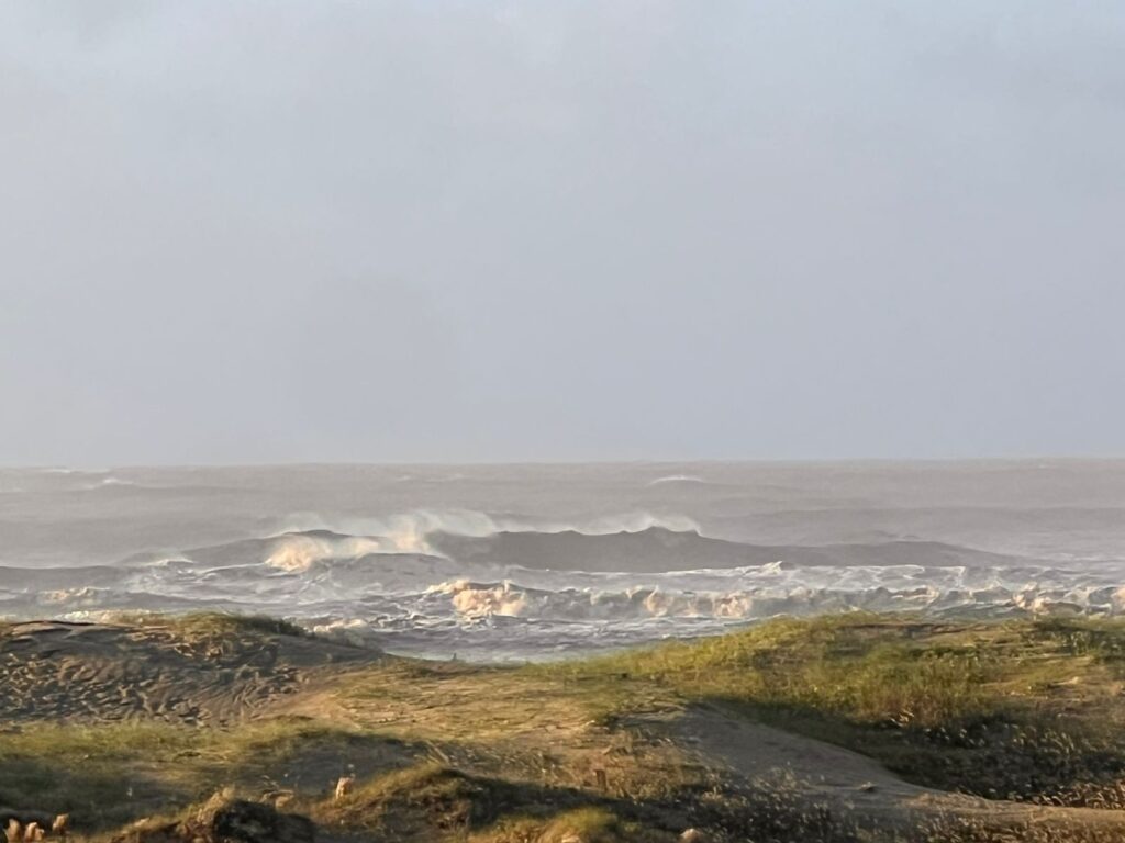 Manhã de quinta começando com o mar em “fúria”. Ondas de 2 metros quebram lá fora sem formação. O vento sopra com rajadas de fraca a moderadas. Hoje a dica é contemplar o marzão. Talvez no decorrer do período, próximo aos molhes, podem começar a ter condições favoráveis, lá no final do pico da curva. Tá bonito o espetáculo da natureza. Boas ondas e bons ventos. Touguinha / kssino.com surf