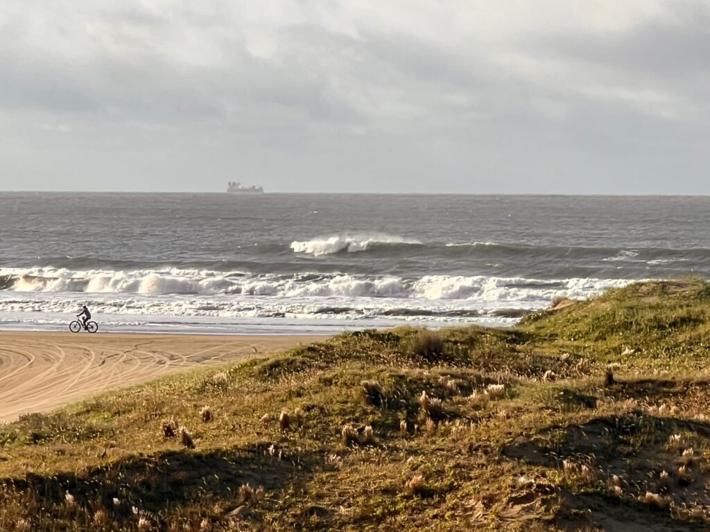 Outra referência de pico para surf na praia do Cassino são as intermediações do bairro Querência, EMA (Estação marinha de aquacultura) e Parque Heólico (Cataventos).