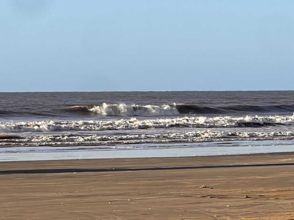 O pequeno swell de sul perdeu ainda mais energia em relação a ontem e chega na praia com ondas bem pequenas. Entre os picos do Terminal e Curva entram algumas séries de meio metrinho ainda bem demoradas. O período também baixou o que deixa o mar sem organização. Pode, no decorrer da manhã, com influência da ondulação de sudeste, o mar dar uma pequena reagida. No mais, ondas pequenas para um força barra lá nos picos do Terminal e Curva. O vento é nulo. Boas ondas, bons ventos e até amanhã. Touguinha / kssino.com surf